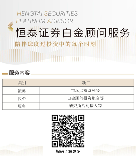 本文所载的信息不构成投资建议,内容均来自市场公开信息。恒泰证券股份有限公司(以下简称“本公司”)具备证券投资咨询业务资格,但本公司不会因接收人收到本文而视其为客户。在任何情况下,本公司不对任何人因使用本文中的任何内容所引致的任何损失负任何责任。本文内容不构成任何投资、法律、会计或税务的最终操作建议,本公司不就文中的内容对最终操作建议做出任何担保。本公司力求文本内容客观、公正,但本公司对这些信息的准确性及完整性不作任何保证,同时,也不保证文本所含信息保持在最新状态,对本文所含信息可在不发出通知的情形下做出修改。对于本文所涉及的服务列表和内容,恒泰证券股份有限公司拥有完整的解释权。